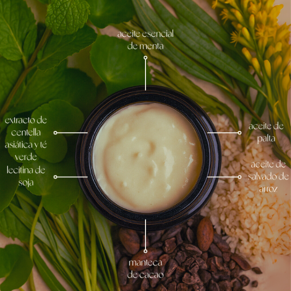 Además, contiene aceites de pepitas de uva, palta, coco y oliva, aloe vera y extracto de centella asiática y té verde.