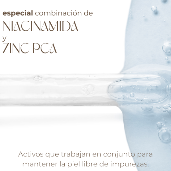 La niacinamida y el zinc PCA ayudan a mejorar la apariencia de los poros, calmar imperfecciones y mantener la piel con un aspecto uniforme.