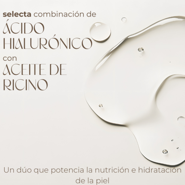 La lecitina de soja refuerza la barrera cutánea y mejora la elasticidad, y junto al ácido hialurónico y el aceite de ricino brinda una hidratación duradera y una piel más suave y flexible.